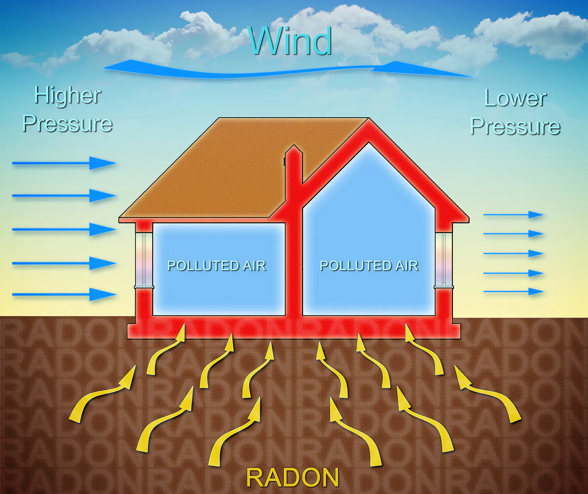 Il gas radon può trovare strada facile per entrare a scuola o in casa sfruttando la differenza di pressione che esiste tra l’edificio e l’esterno: questa differenza produce un movimento convettivo che trascina il radon dal sottosuolo all’interno dell’edificio, facendolo passare attraverso ogni fessura.