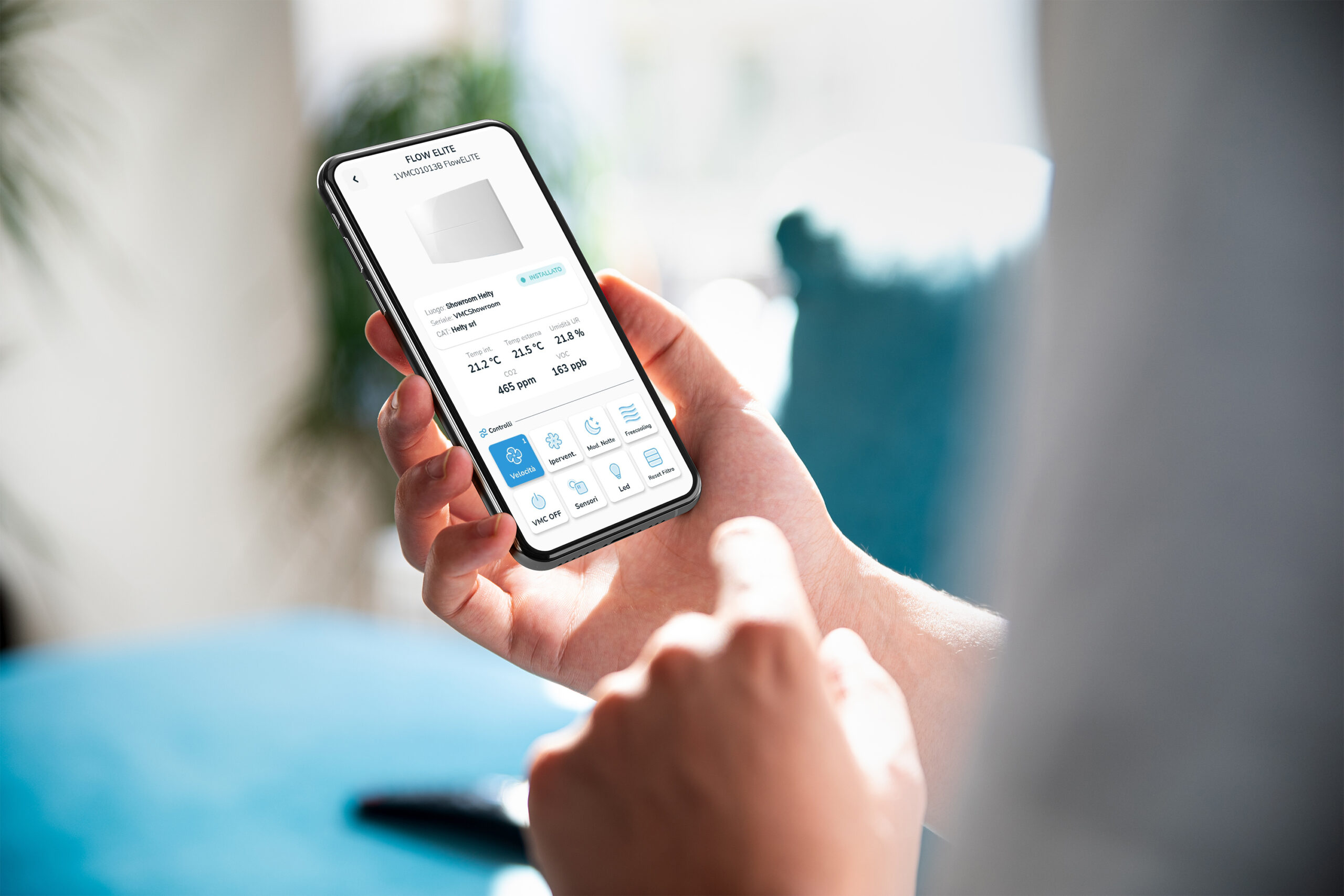 Oltre a ciò, per un controllo smart e integrato dei valori di IAQ, esistono soluzioni come il sistema di ventilazione meccanica controllata Helty FlowELITE, il quale ha integrati al suo interno i sensori igrometrico, VOC e CO2: i valori possono essere consultati direttamente dall’App Helty Home, e il sistema regola automaticamente la velocità di ricambio dell’aria per un ambiente domestico sempre salubre.