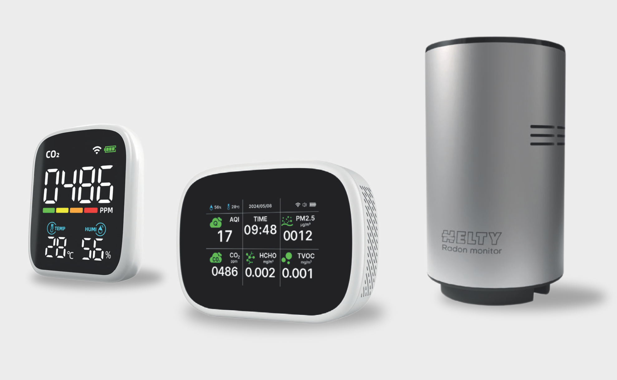 Per misurare la qualità dell’aria indoor (IAQ – Indoor Air Quality) sono disponibili diversi sensori e rilevatori dedicati. Mentre per il radon sono disponibili diverse soluzioni, dai test passivi, con misuratori che vengono poi inviati in laboratorio; a tecnologie attive, come il sensore Radon Monitor Helty che, in abbinamento ai sistemi VMC predisposti, consente una rilevazione in tempo reale della concentrazione di gas radon negli ambienti, modulando la ventilazione in funzione delle diverse necessità.