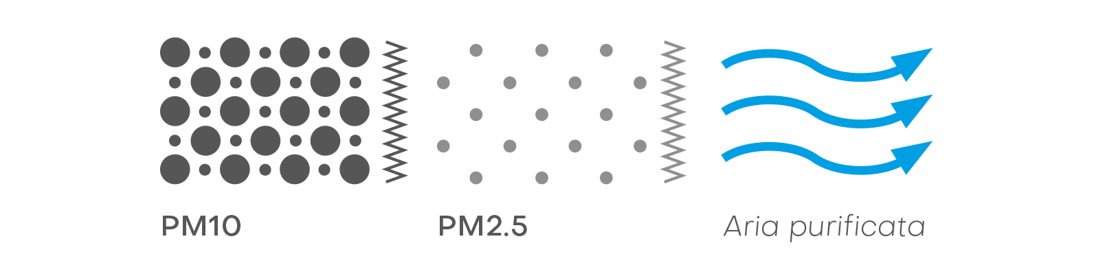 Perciò la norma in vigore stabilisce un sistema di classificazione dell’efficienza dei filtri per ventilazione non più diviso per classi di efficienza grossolane (G), Medie (M) o Fini (F), ma distinto nelle seguenti 4 classi: ISO Coarse, ISO ePM10, ISO ePM2,5 ed infine ISO ePM1.