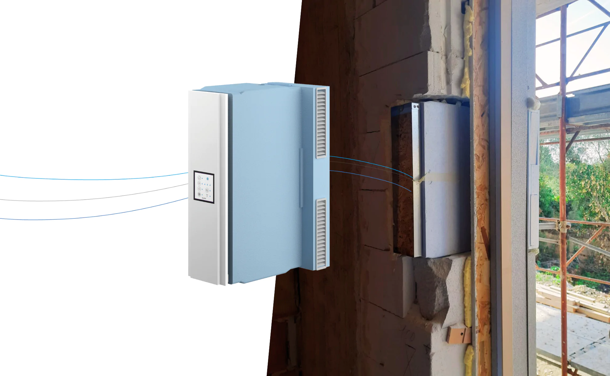 soluzione VMC a scomparsa (l’unità VMC si incassa direttamente nella muratura, lasciando a vista solo il pannello comandi)