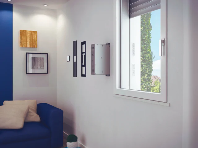 Nuova Flow 40 con uscite in luce è l’innovativo sistema di VMC decentralizzata privo di canali, nato in casa Helty. Un impianto di VMC (Ventilazione Meccanica Controllata) a scomparsa nel muro, ora ancora più invisibile, grazie alla possibilità di gestire le griglie di aerazione direttamente nella spalla del serramento.
