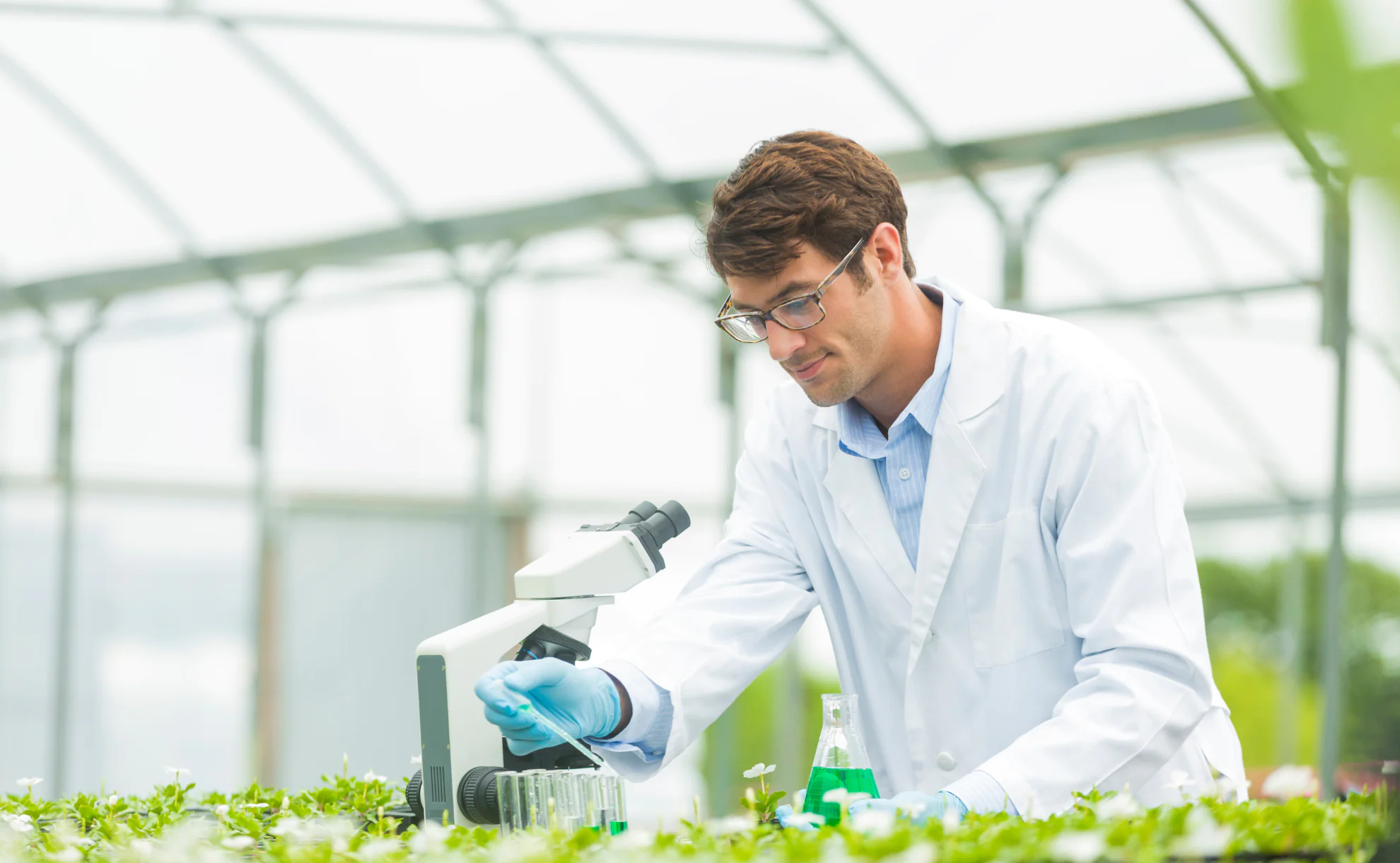 scienziato che studia piante domestiche