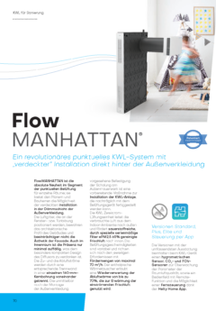 Infolge einer einzigartigen Kombination aus geringer Wandstärke und hohem Leistungsprofil verschwindet die Luftaufbereitungseinheit mit FlowMANHATTAN unter die „Gebäudehaut“ in der Dämmschicht des Wärmedämmverbundsystems. Das Gerät wird komplett von außen installiert, kann auf beiden Seiten der Fensteröffnung angebracht werden und ist mit jeder Art WDVS kompatibel.