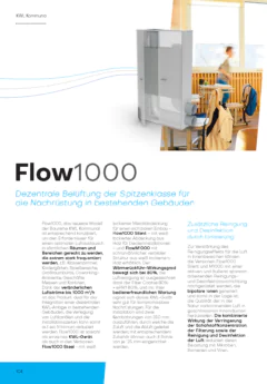 Flow1000 ist eine dezentrale KWL und geradezu perfekt zur Sanierung bereits bestehender Gebäude im Dienstleistungssektor (Schulen, Büros, Geschäfte, Banken, Versicherungen…), da das System keine komplexen und invasiven Maurerarbeiten erfordert und die Installationszeiten äußerst kurz ausfallen. Mit seinen variierbaren Luftfördermengen von bis zu maximal 1000 m3/h ist Flow1000 sowohl als einzelne KWL-Einheit als auch in den Versionen Flow1000 Steel – mit weiß lackierter Stahlabdeckung für einen sichtbaren Einbau – Flow1000 Silent – mit weiß lackierter Abdeckung aus Holz für Deckeninstallationen – und FlowM1000 mit schrankähnlicher vertikaler Struktur aus weiß lackiertem Holz erhältlich.