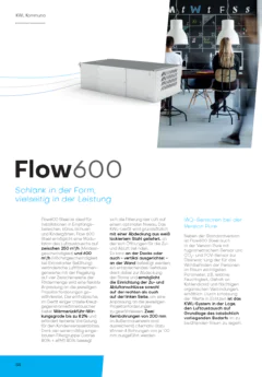 Die KWL-Einheit Flow600 wird serienmäßig in der Version Steel geliefert und in einer Abdeckung aus weiß lackiertem Stahl untergebracht, an der sich die Öffnungen für die Zu- und Abluft befinden. Diese Konfiguration gestattet, dass das Gerät sichtbar und so, wie es ist, d.h. ohne jede weitere ästhetische Verkleidung, installiert werden kann. Die Ausführung Flow600 Pure beinhaltet außerdem einen hygrometrischen Sensor und CO2- und VOC-Sensoren, sodass der Luftaustausch auf Grundlage des im Raum vorliegenden effektiven Bedarfs geregelt werden kann.