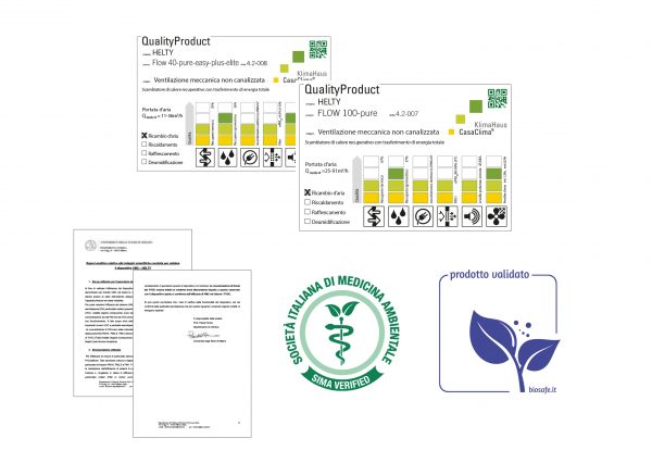 The performance of the Helty ventilation systems are recognized by the Casa Clima Quality Seal and have obtained the SIMA and BioSafe validations