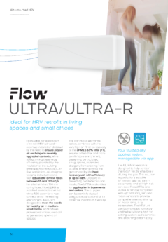 The FlowULTRA wall-mounted HRV system redefines indoor comfort, delivering outstanding performance and maximum flexibility. Integration with optional sensors (Radon, CO₂ and IAQ) enables FlowULTRA to continuously monitor all environmental parameters, ensuring consistently healthy air in every room.