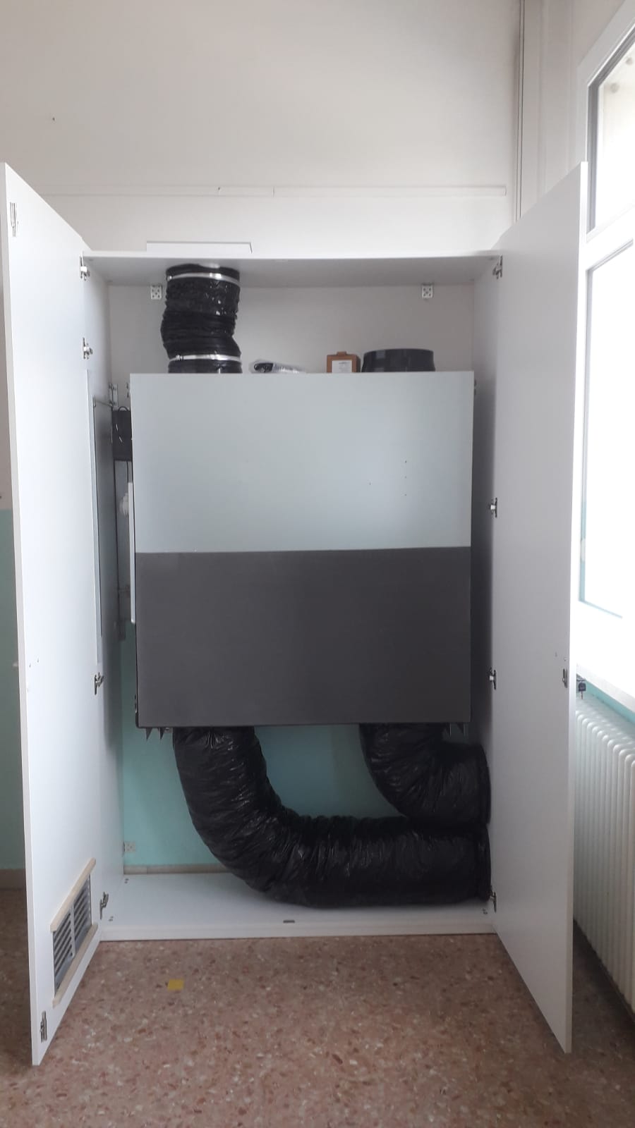 The powerful air flow rate, which can be set at 10 speeds up to 800 m³/h, allows for modulated ventilation of the individual classrooms, which can also help deal with emergency situations.