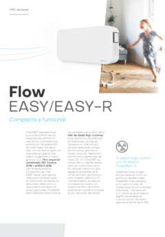 FlowEASY es un sistema VMI puntual de pared y de doble flujo con recuperación de calor, diseñado para brindar los beneficios de la ventilación forzada a los edificios ya habitados.