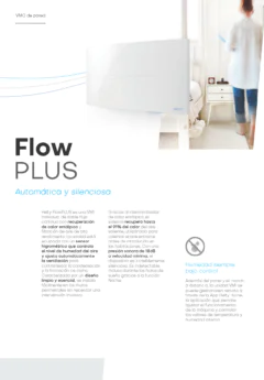 FlowPLUS se instala en la pared en menos de una hora y se integra con facilidad y rapidez en ambientes residenciales, sobre todo en el caso de edificios ya habitados o de reformas ligeras. ‎ El sistema de ventilación puede controlarse, o bien mediante el panel sinóptico y el mando a distancia por infrarrojos, o bien cómodamente a través del teléfono inteligente o tableta con la aplicación Helty Home. La aplicación desarrollada por Helty conecta todos los aparatos a la red wifi para poder configurar el funcionamiento de la VMI y controlar los valores de temperatura y humedad relativa en las diferentes estancias.El único mantenimiento que debe realizar el usuario es cambiar fácilmente el filtro agotado cuando así lo indique el aparato.