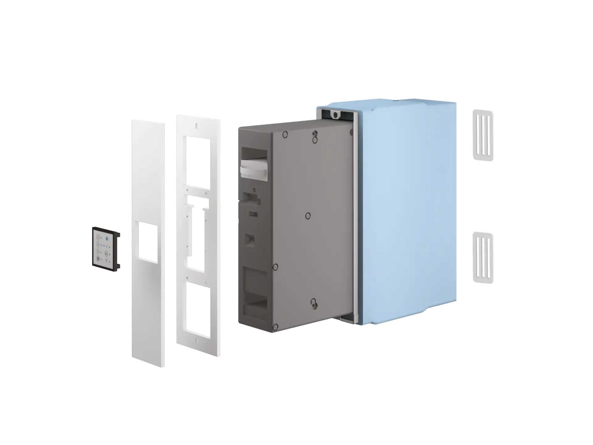La caja de preparación de EPS, diseñada con gran atención a las prestaciones térmicas y acústicas de la envolvente, permite alojar un VMI puntual de doble flujo en cualquier punto de un muro perimetral del edificio.