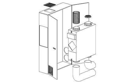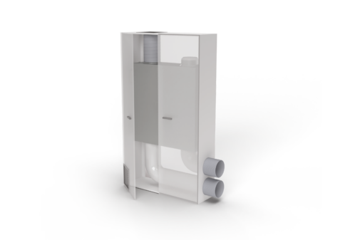Flow1000 ofrece una solución de retroadaptación VMI sin concesiones. La instalación sólo requiere dos núcleos de 250 mm en el muro perimetral para gestionar los flujos de entrada y extracción de aire. También puede gestionarse con 4 tubos de 125 mm mediante accesorios. La salida MOD-BUS para el control remoto, directamente desde los sistemas domóticos, se incluye de serie.