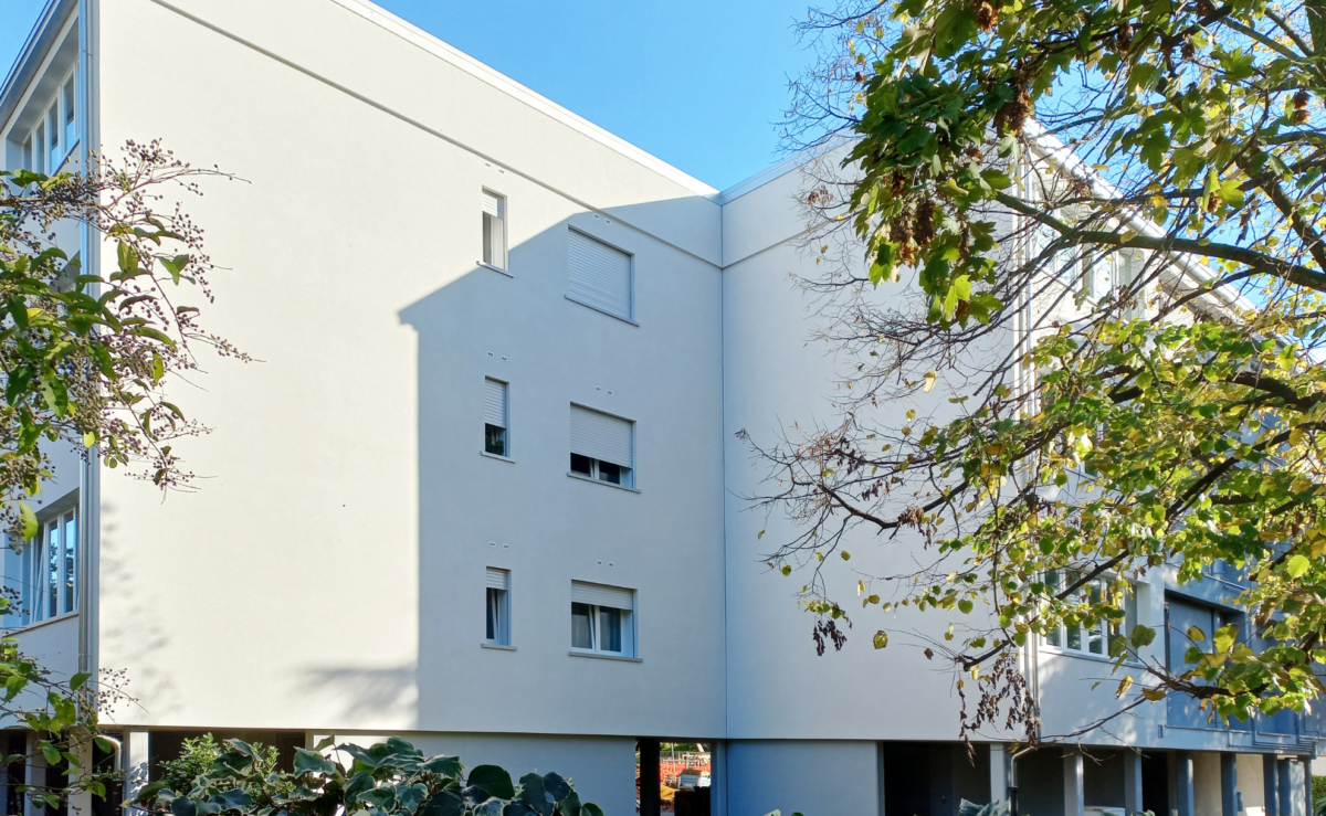 I lavori, realizzati in appena nove mesi e senza evacuare gli inquilini, hanno permesso di coibentare le facciate dei 3 edifici, consolidare e isolare la copertura, installare un nuovo impianto fotovoltaico, riqualificare i sistemi di climatizzazione e di illuminazione, sostituire i vecchi infissi con nuovi serramenti ad alta tenuta e isolare dal punto di vista termico ed acustico i fori finestra grazie a nuovi controtelai coibentati.