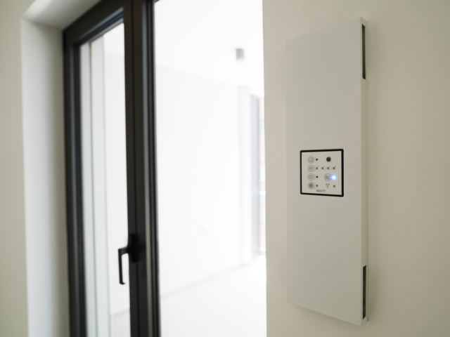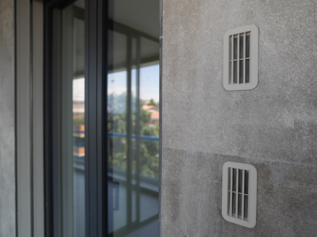 Ogni unità Flow40 è completamente incassata nella parete, lasciando visibile solo un pannello comandi dal design minimale. Nessun controsoffitto, nessuna canalizzazione: solo efficienza e silenzio, per una qualità dell’aria costante e controllata, anche nelle stagioni più critiche.