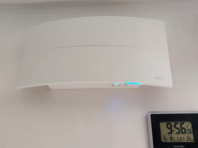 Al fine di evitare problemi di questo tipo, e con il presupposto di toccare in minima parte gli interni, la soluzione migliore individuata è ricaduta sul modello Helty Flow Plus, macchina VMC a parete con portate d’aria fino a 40m3/h, dotata di serie di sensore igrometrico per il monitoraggio dell’umidità interna e la regolazione automatica della portata d’aria, in funzione alle necessità.