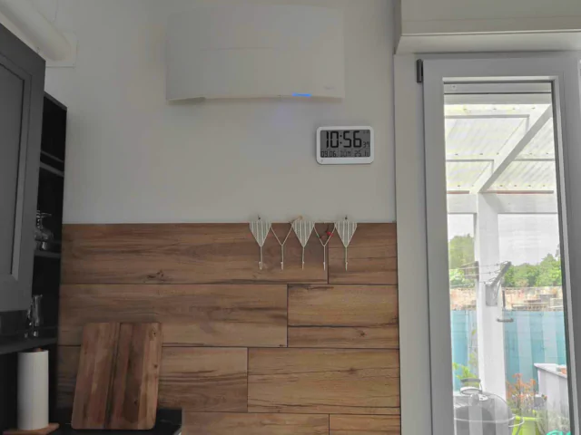 Le VMC Helty sono state installate nell’openspace cucina-soggiorno (2 unità VMC), ed una in ogni camera da letto, al posto dei termosifoni che sono stati eliminati; nella zona cucina, invece, la VMC Helty è stata posizionata in alto, a fianco della porta finestra.
